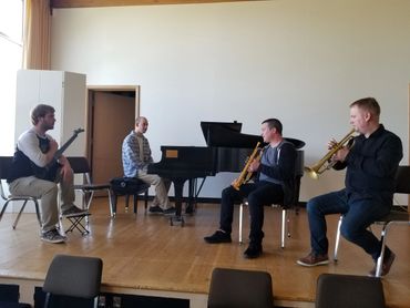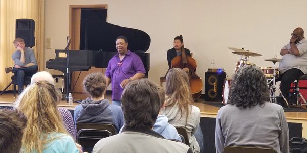 During the interactive portion of the workshop, students from the WSU combo "Jazz Wires" performed for Logan and the quartet. The students were encouraged to "play like it was the very last time". Drummer Ryan Lee coached