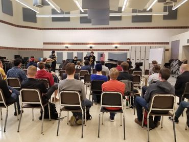 On Wednesday Oct 3rd, BLUES PEOPLE stepped out to Cheney and talked with students on aspects of the music business and then performed a short set for the entire school of music at Convocation.